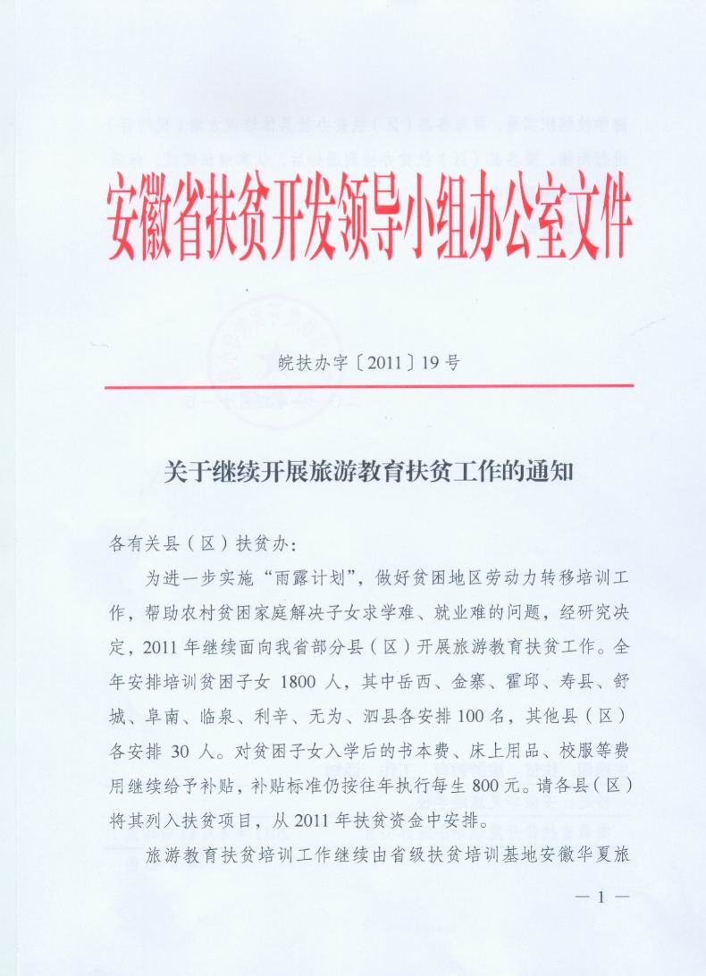 2011年度安徽省旅游教育扶贫文件