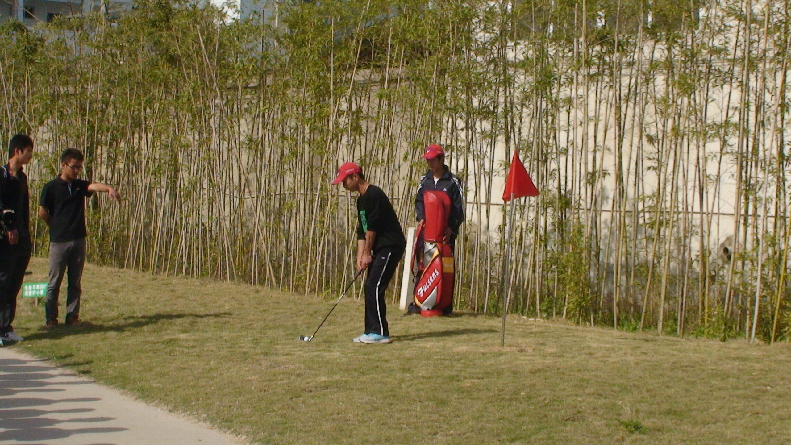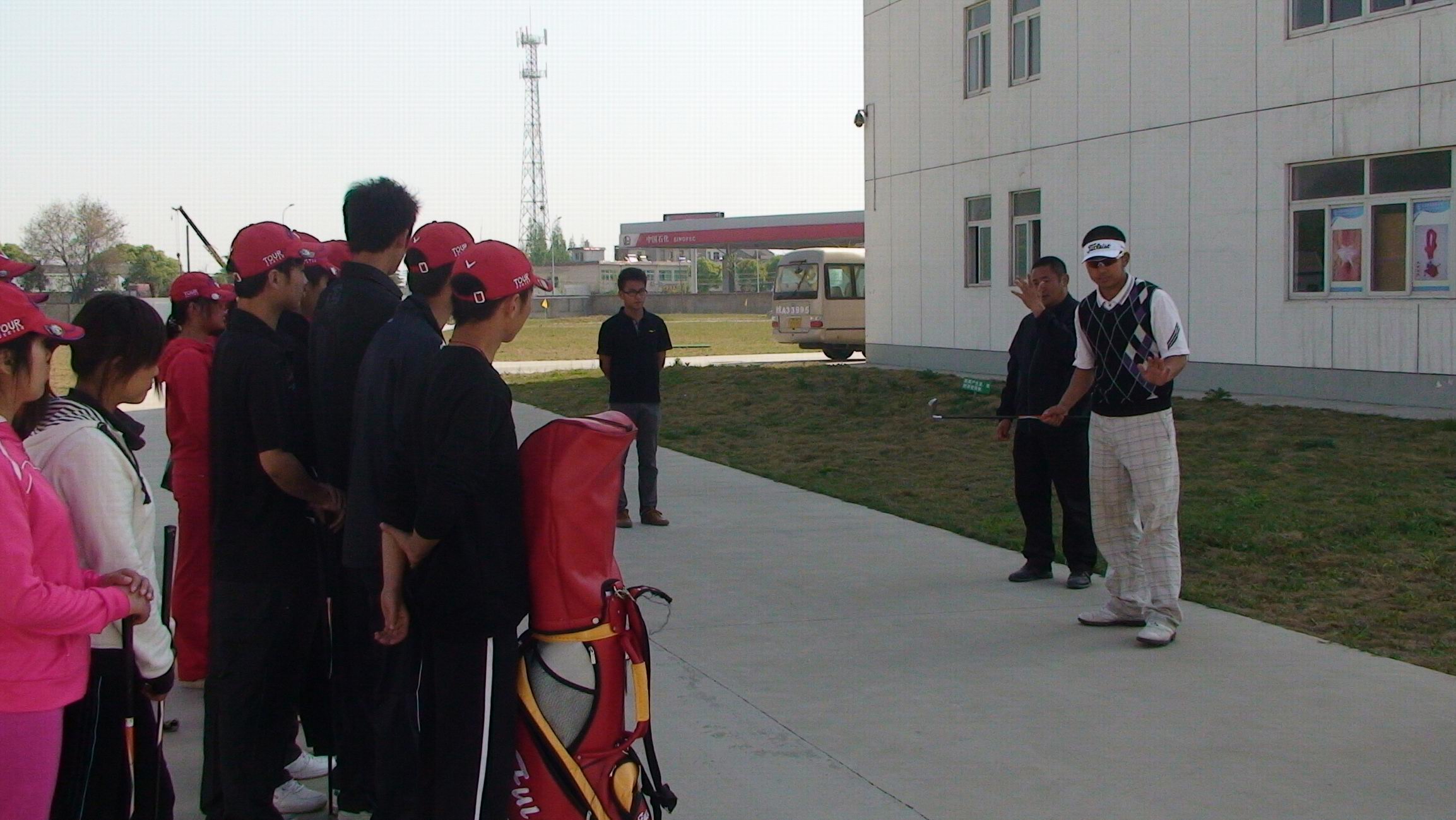 4月19日,江苏省高尔夫球队吴文斌总教练携吴豪川、田园等四名球员来到我校,对我校高尔夫班学员进行考核与专业提升教学。4月18日,吴文斌总教练率领江苏省高尔夫球队刚从珠海金湾高尔夫俱乐部打完2011年全国业余高尔夫球希望赛(广东珠海站),即刻乘机抵达我校。队员吴豪川获得2011年全国业余高尔夫球希望赛(广东珠海站)第三名,其成绩为70杆。