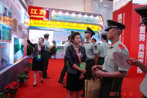 国务院于2011年6月9日至15日在北京举办全国扶贫系统十年成就展,有30多个省市参加了本次会展。我校赵健老师和胡巧敏同学脱颖而出,被安徽省扶贫办选拔出担任安徽馆讲解员。