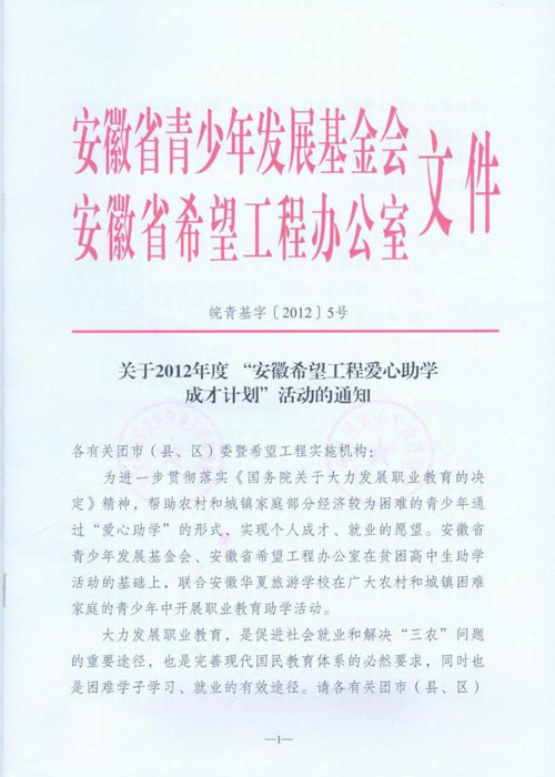 2012年度“安徽希望工程爱心助学成才计划”活动通知