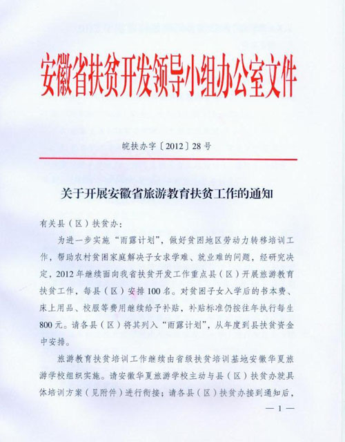关于开展安徽省旅游教育扶贫工作的通知