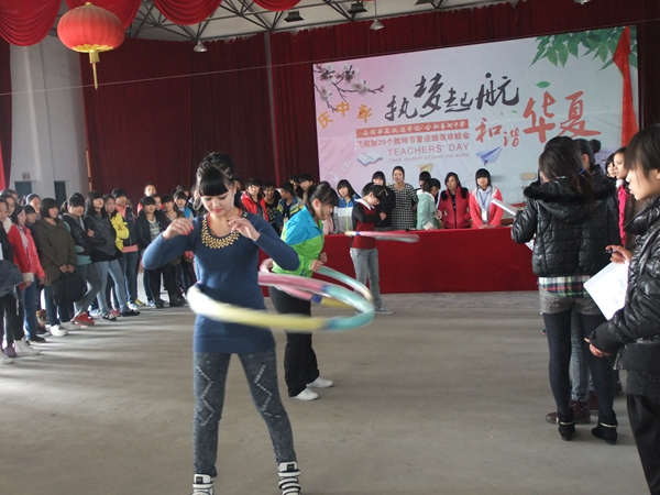 11月30日,我校在多功能厅举办了呼啦圈比赛,华夏旅游学校全体师生参与了此次活动。