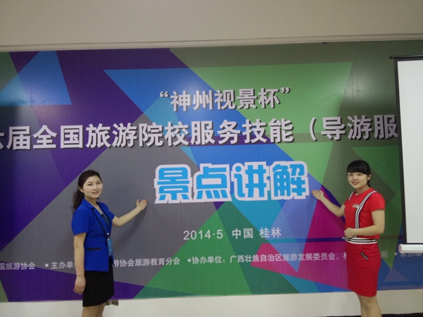 比赛由综合知识理论考核、景点讲解(现场)、才艺展示三个部分组成。安徽华夏旅游学校经过校内层层选拔,遴选出王荣、王欣两名同学参加此次比赛。