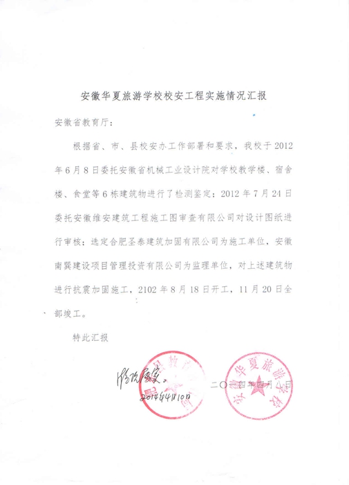 安徽华夏旅游学校校安工程实施情况汇报