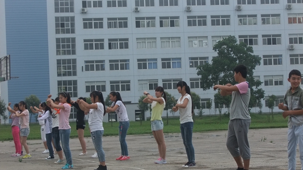 安徽华夏旅游学校新生学生干部培养夏令营加入第二天。大清早,一遍能量操之后的同学们更加精神了。
