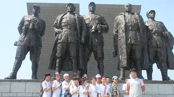 午饭过后,我们来到了渡江战役纪念馆。纪念馆内的庄严气息让同学们一下就肃然起敬了。同学们边走边看,各种文物、照片应接不暇,栩栩如生地把我们带到那个年代。一件件文物、一张张照片诉说着血红的历史,一个个数字介绍着战争之惨痛。大家用心的感受着,体会着,表情流露着兴奋,心中澎湃着激情。“烈士名单”是让人最感动的,感受着英烈们用年轻换来的解放,和那用鲜血与生命换回的国家统一。利用现代声光模拟技术对历史战争场景的再现,生动展示了渡江战役各阶段的真实情况,给同学们留下了非常深刻的印象,可以说是一堂生动的爱国主义教育课。