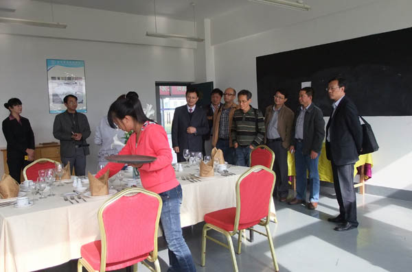 在最后的反馈会上,专家组束志伟组长对我校的特色专业的办学予以高度赞赏,专家组的周经春主任说:“在看了专业资料并参观了各专业实训,也听了学校的专业情况介绍,有三点感受:一是专业很有特色,二是酒店服务与管理、导游管理以及高尔夫等三个专业的专业水平较高;三是专业教学积极创新,校企合作模式值得提倡。……”最后,周主任还就强化现代教学手段、校外实训的管理等方面提出了非常好的建议。