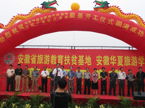中新网安徽频道9月18日电 ( 叶俊学 朱礼文) 9月18日,国内首个旅游教育扶贫基地正式开工奠基仪式在安徽省合肥市举行,安徽省直多家单位负责人和贫困学生代表参加现场活动。 2005年2月5日,安徽省扶贫领导小组办公室批复合肥华夏旅游学校设立安徽旅游教育扶贫基地,随即,合肥市肥东县发展计划委员会对安徽省华夏旅游学校(院)工程建设项目正式立项。 据悉,该基地位于合肥肥东县中岗村,总规划建筑面积3万平方米,总投资5000万元,招生容量4500名学生,项目分三期实施。该基地计划5年内免费培养万名贫困青年学生,促进教育扶贫事业和旅游经济协同发展。 该项目由民建安徽省委主管的合肥华夏旅游学校发起并协同有关单位组织实施。据了解,合肥华夏旅游学校是安徽省希望工程“爱心助学”、省妇联“春蕾计划”及省政府扶贫办教育扶贫合作单位,采取“勤工俭学”、“社会帮困”等形式办学8年,目前免费或半费在校生1500余人。今年,又将有650多名来自全省各地贫困家庭子女陆续入学。 安徽省委、省政府、省政协、民建安徽省委、省扶贫办、团省委、省旅游局等多家单位相关部门负责人参加了当天的旅游教育扶贫基地奠基仪式。(完) |