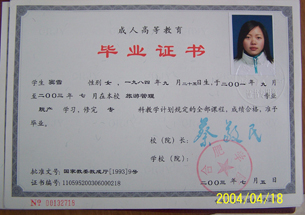 大专毕业证书样本