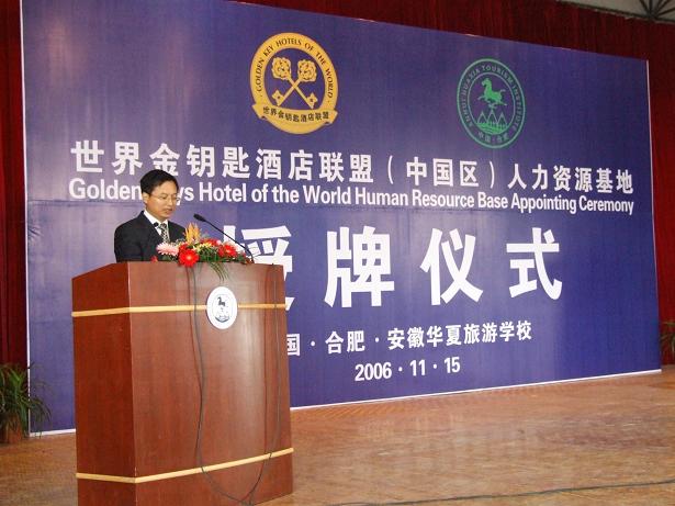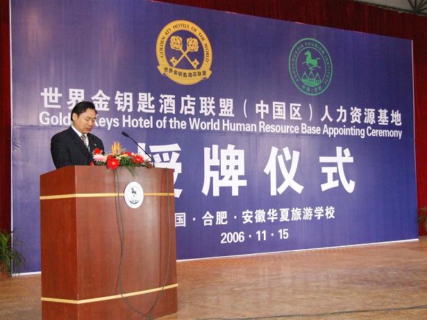 中新安徽网合肥11月15日电(记者吴兰)11月15日,国际金钥匙组织中国区人力资源基地授牌仪式在合肥进行,安徽华夏旅游学校成为国际金钥匙组织中国区首家人力资源基地。