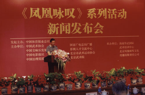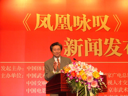新浪体育讯 由中国体育报业总社、中国武术协会、中国交响乐基金会、北京市武术运动协会等多家单位联合主办的《凤凰咏叹》系列活动的筹备工作已经全面展开。6月22日该活动组委会在国际体育总局召开的新闻发布会上,首次推出了要把武术和交响乐放到同一个舞台上的创举。