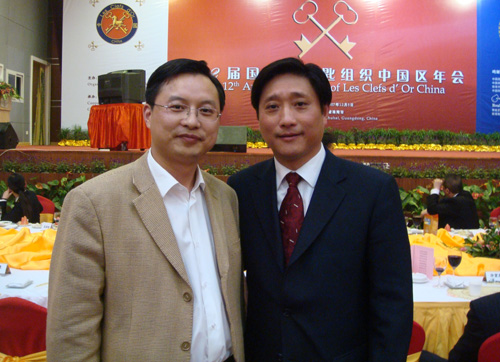 我校校长王卫东与国际金钥匙组织中国区主席孙东(左)合影