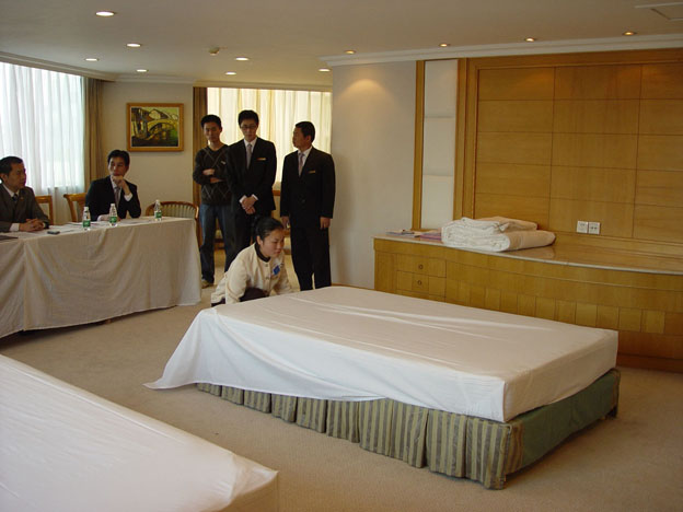贵校06级实习生在参加"2007年东莞寮步金凯悦大酒店服务技能大赛"中,表现突出,其中聂卫凤同学喜获"中餐摆台"第一名;赵莎莎同学荣获"西餐摆台"第二名;覃姣姣、杨倩两名同学分别获得“前台接待”比赛第一名和第三名;李锦同学荣获“礼宾服务”第一名;汪婷婷同学荣获“总机服务”第一名;朱华同学获得“ 客房铺床”第三名。在此,对贵校培养出这样优秀的酒店人才,我们深表感谢。愿我们继续保持良好的合作,为酒店业培养出更多的人才做出更大的努力。