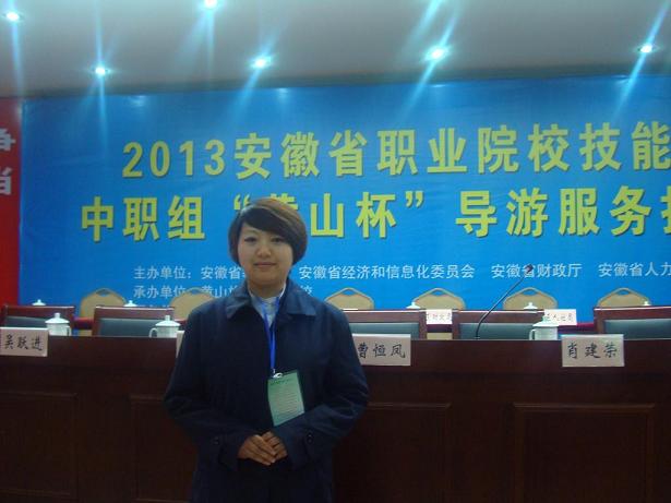 在刚刚落下帷幕的2013年安徽省中职院校师生技能大赛中,我校参赛选手胡苗喜获“黄山杯”导游服务技能大赛二等奖。