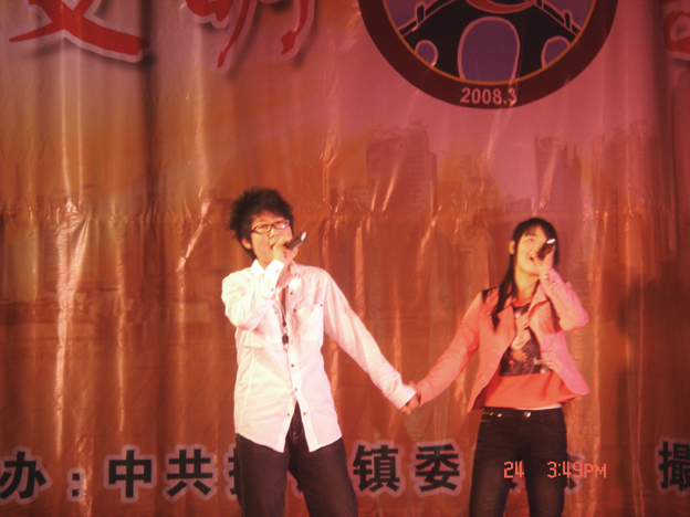2008年3月19日我校学生参加“放歌撮镇”歌手大赛。