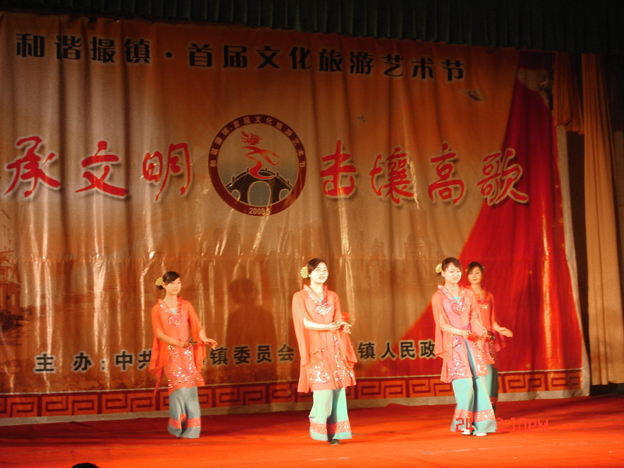 2008年3月24日我校学生和解放军电子工程学院的演员们一起为撮镇父老献上一场精彩的闭幕式晚会。