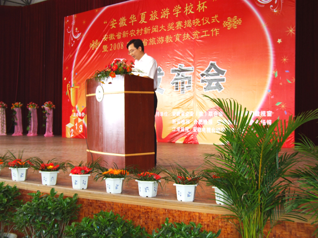 6月3日,2008年度安徽省旅游教育扶贫工作新闻发布会在安徽华夏旅游学校召开。会上,安徽省扶贫开发领导小组办公室副主任、安徽省旅游教育扶贫联合体理事长史贤龙宣读了皖扶办[2008]14号文件“关于开展2008年度旅游教育扶贫工作的通知(摘要)”,明确表示2008年全省旅游教育扶贫工作将帮助2000名贫困学生完成学业,扶贫助学金额达1600万元。全省各地农村经济困难家庭子女即日起可到所在地县(区)政府扶贫办申请入学。