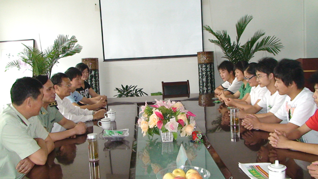 6月3日下午我校会议室里,来安县关心下一代工作委员会陈永庆主任和人武部吕德泉科长正和学生亲切地交谈。来安县06级大专班和07级中专班学生用流利的普通话向陈主任汇报了在校理论学习和在单位实践学习的心得体会。当学生谈到通过学习和实习,能力和素质都得到了提高,思想也更加成熟,更重要的是知道了感恩时,陈主任情不自禁地说:“今天看到你们的进步更加坚定了把来安地区困难学生送到华夏旅游学校培养的信心和决心,作为一名老同志我最大的快乐就是看到你们的成长。我为你们感到骄傲,你们一定要努力学习,学习做人和做事,为社会多做贡献。”来安县人武部的吕德泉同志勉励学生:“一定要珍惜学习的机会,不管以后被分配在哪个工作岗位,都要全力以赴的把工作做好;不管以后走到哪里,都不要忘记那些帮助过你的人。”两位领导朴实的话语让在场的所有学生和老师心里感到无比温暖。