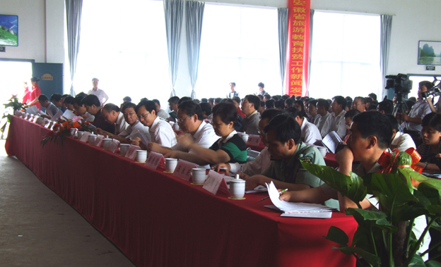 据悉,我省旅游教育扶贫工作自1999年开始实施,近9年来旅游教育扶贫工作突出,共帮扶培养3758名贫困生完成大中专学业,走出了贫困,帮扶助学金额近3000万元。安徽华夏旅游学校牵头的“旅游教育扶贫”三位一体实践活动已经成为安徽扶贫教育工作的一个亮点品牌。 本次新闻发布会邀请安徽省记者协会、安徽省经济记者协会及省内主要媒体负责人参加,大家共同表示要将这种旅游扶贫教育模式宣传好、推广好,让更多的人受益。