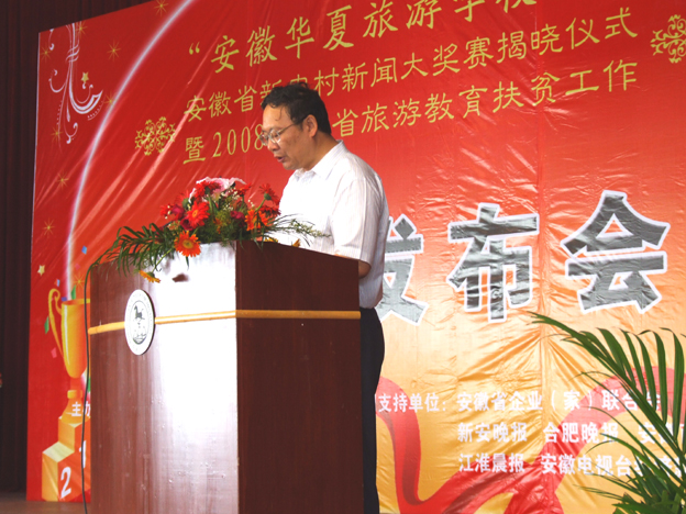 |     6月3日,2008年度安徽省旅游教育扶贫工作新闻发布会在安徽华夏旅游学校召开。会上,安徽省扶贫开发领导小组办公室副主任、安徽省旅游教育扶贫联合体理事长史贤龙通知宣读了皖扶办[2008]14号文件“关于开展2008年度旅游教育扶贫工作的通知(摘要)”,明确表示2008年全省旅游教育扶贫工作将帮助2000名贫困学生完成学业,扶贫助学金额达1600万元。全省各地农村经济困难家庭子女即日起可到所在地县(区)政府扶贫办申请入学。