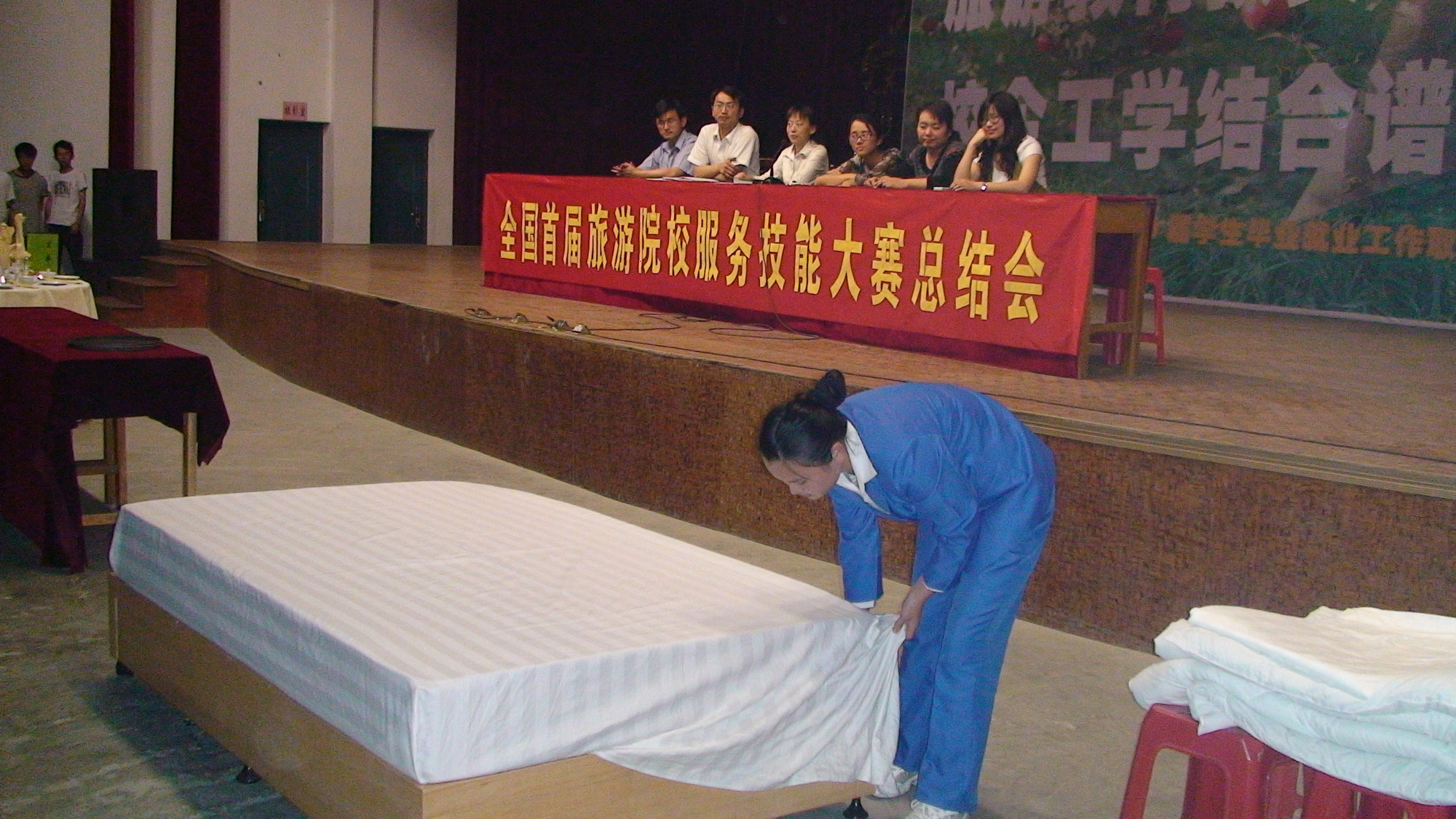 本次大赛总教练潘筱晴老师也对本次大赛做了进行教学方面的总结与分析,李雪莲同学代表获奖选手发表了获奖心得。获奖选手周静、徐良梅、丁盈盈分别为同学们作了中餐宴会摆台、中式铺床技能展示,他们的精彩表现赢来了同学们阵阵掌声。