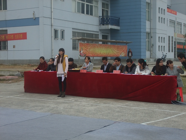 为了此次比赛,同学们做了充足的准备,在活动中表现出了饱满的热情,积极的姿态,展示出了我校学子的良好风采,很好的诠释了我校“扬天马精神,育山水品德”的口号。本次活动旨在提高广播操的质量,加强学生们的凝聚力,培养学生们的集体观念,展示学生们的积极风貌,同时,更是为了增强学生们的身体素质。担任此次比赛评委的是来自安徽师范大学的实习老师们,徐军老师和项家红老师则负责了本次活动的整体运行。在主持人简洁明了的开场白之后,伴随着嘹亮的进行曲,本次比赛拉开了序幕。踏着整齐的步伐,跟着铿锵的韵律,同学们精神饱满,缓缓入场。在比赛中,尽管天气寒冷,但依旧阻挡不了同学们火一样的热情。动作整齐划一,节奏干练有力,给在场观众带来了一场视觉上的盛宴。