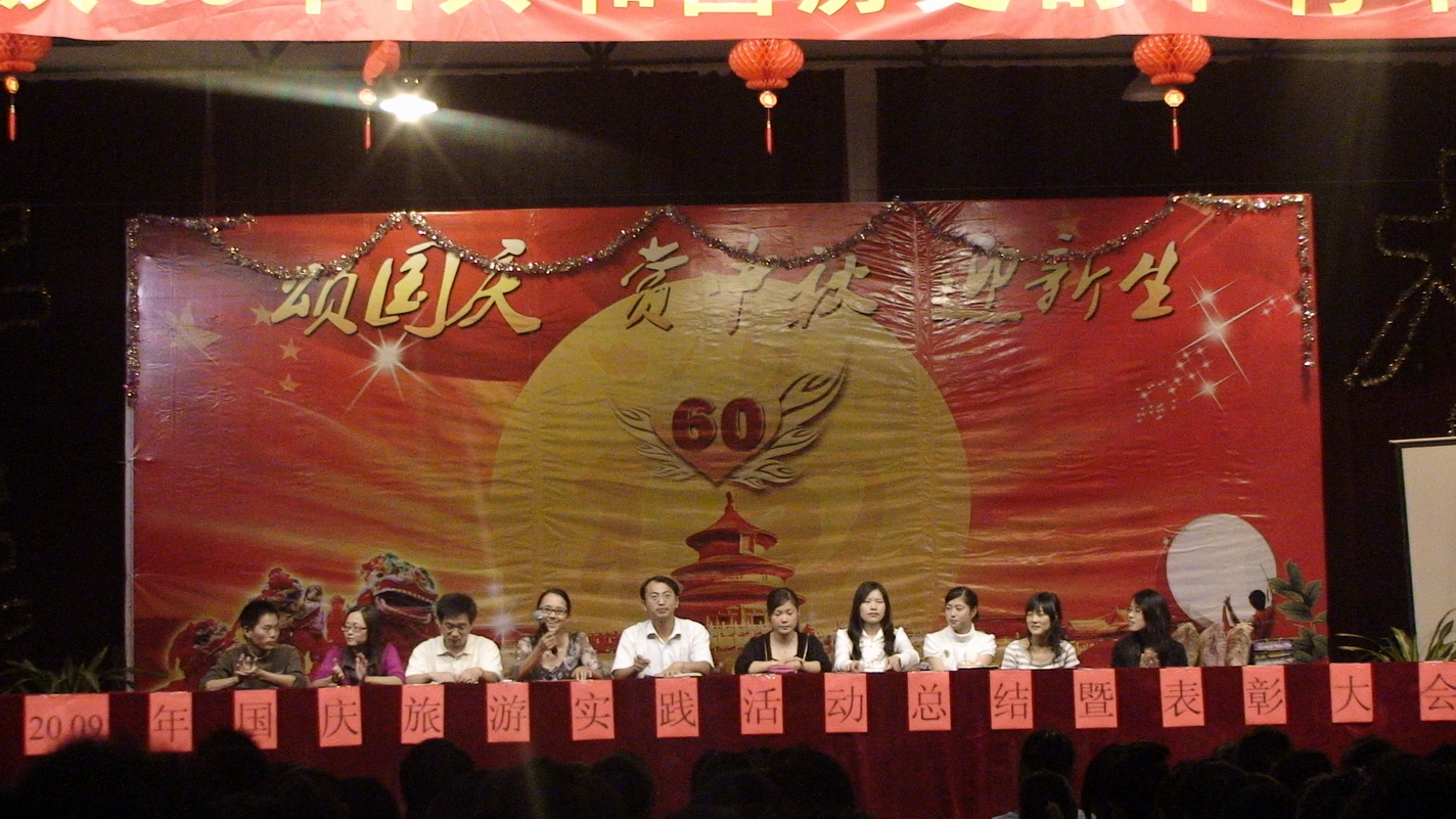 10月8日晚,我校在校多功能厅隆重举行2009年国庆旅游实践活动总结暨表彰大会。