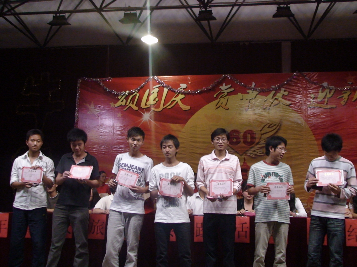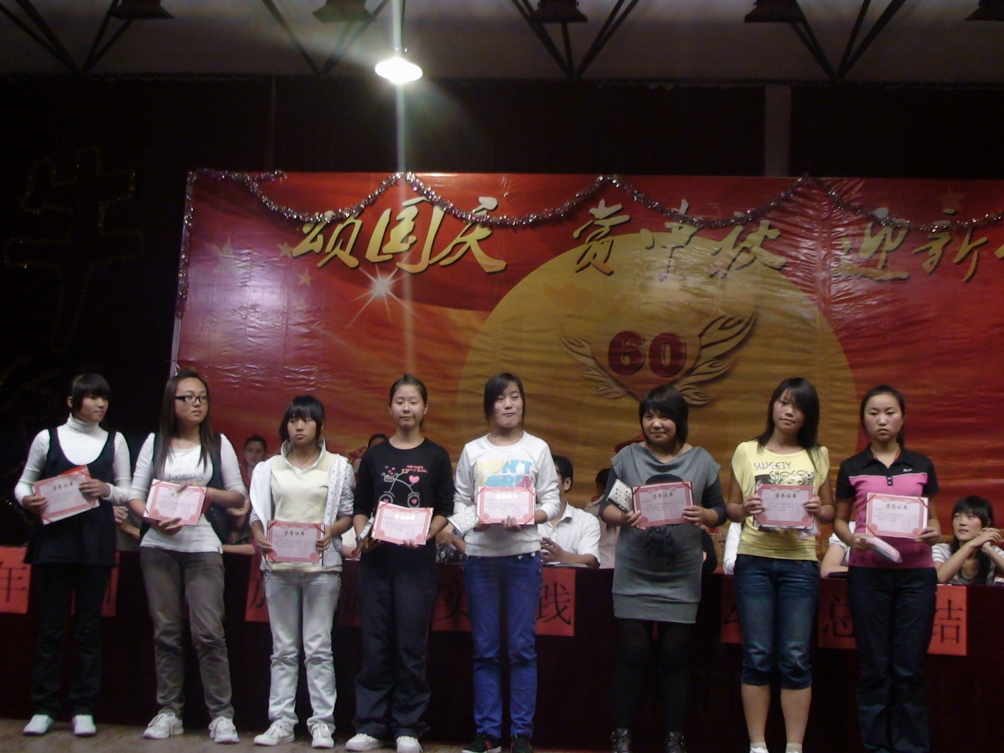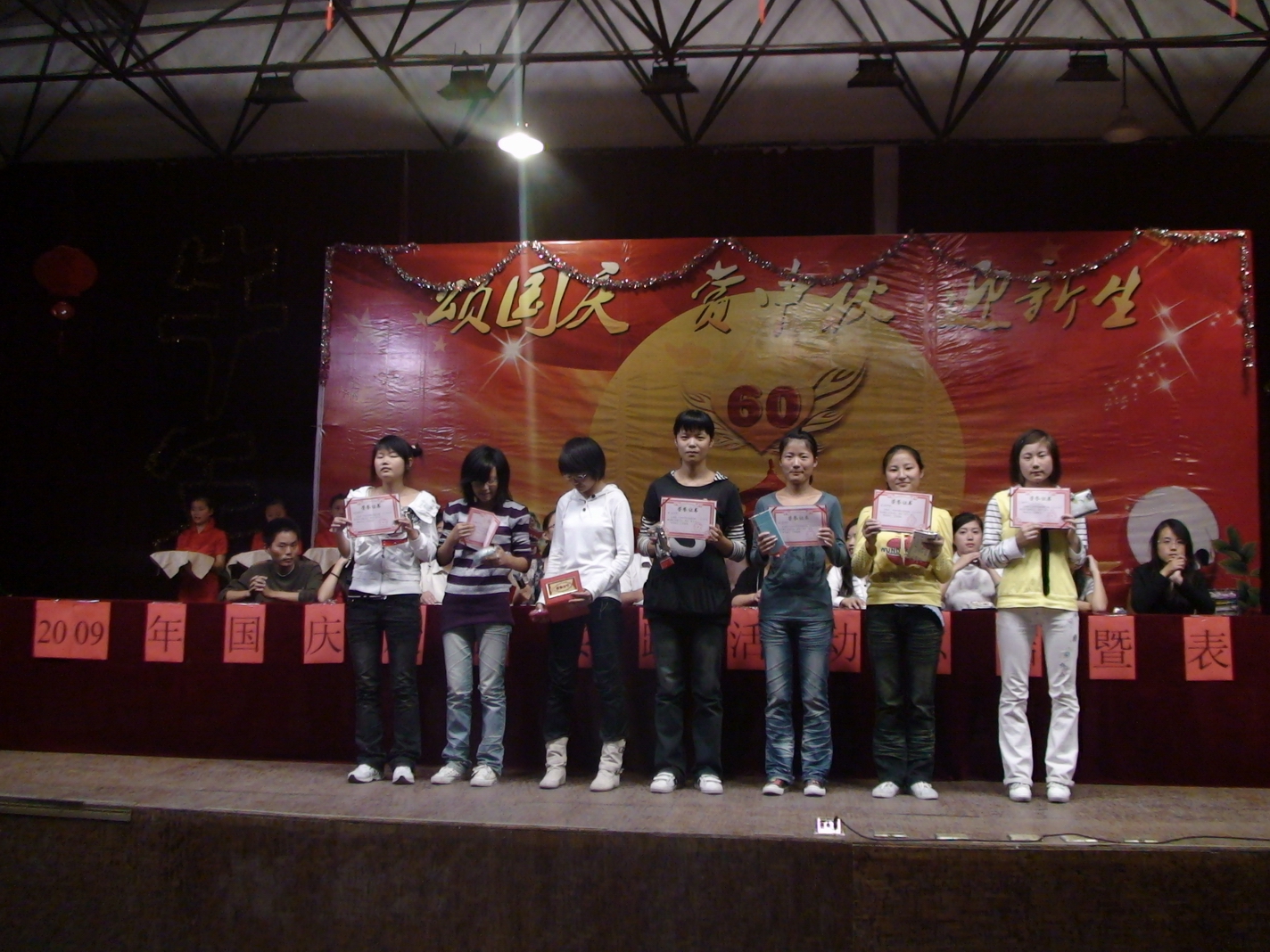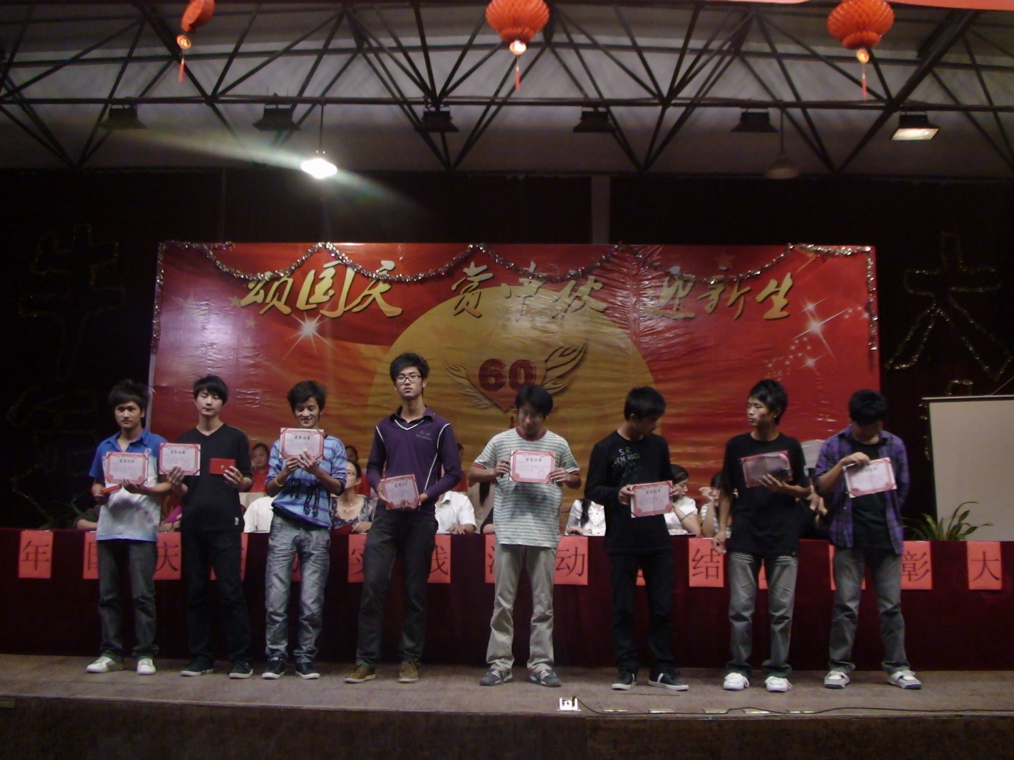 这次国庆旅游实践系列活动共评出集体奖36个,个人奖98个。从观看国庆60周年阅兵仪式、红色爱国之旅、古逍遥津主题活动、“颂国庆、赏中秋、迎新生”文艺晚会到师生的乒乓球、羽毛球比赛,每个活动中同学们都有出色的表现,在今天的大会上都一一进行了表彰。