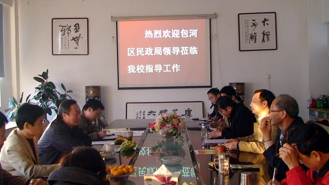 2009年11月3日下午,合肥市包河区民政局局长赵立群、王大郢党总支书记王根堂、副书记王世坤、委员吴金芝等领导来我校指导科学发展观学习实践活动,并与我校签订“结对共建促学协议书”。