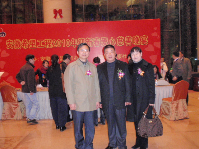 1月21日晚,由安徽省希望工程办公室、安徽市场报社联合主办的“安徽希望工程2010年迎新春爱心慈善晚宴”在合肥隆重举行,现场共收到爱心捐款590.6万元。我校校长王卫东作为安徽省青少年发展基金会理事出席了本次活动。