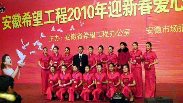2010年1月21日,我校15名礼仪队学生为“安徽希望工程2010年迎新春爱心慈善晚宴”提供志愿服务活动。爱心慈善晚宴在泓瑞金陵大酒店举行。