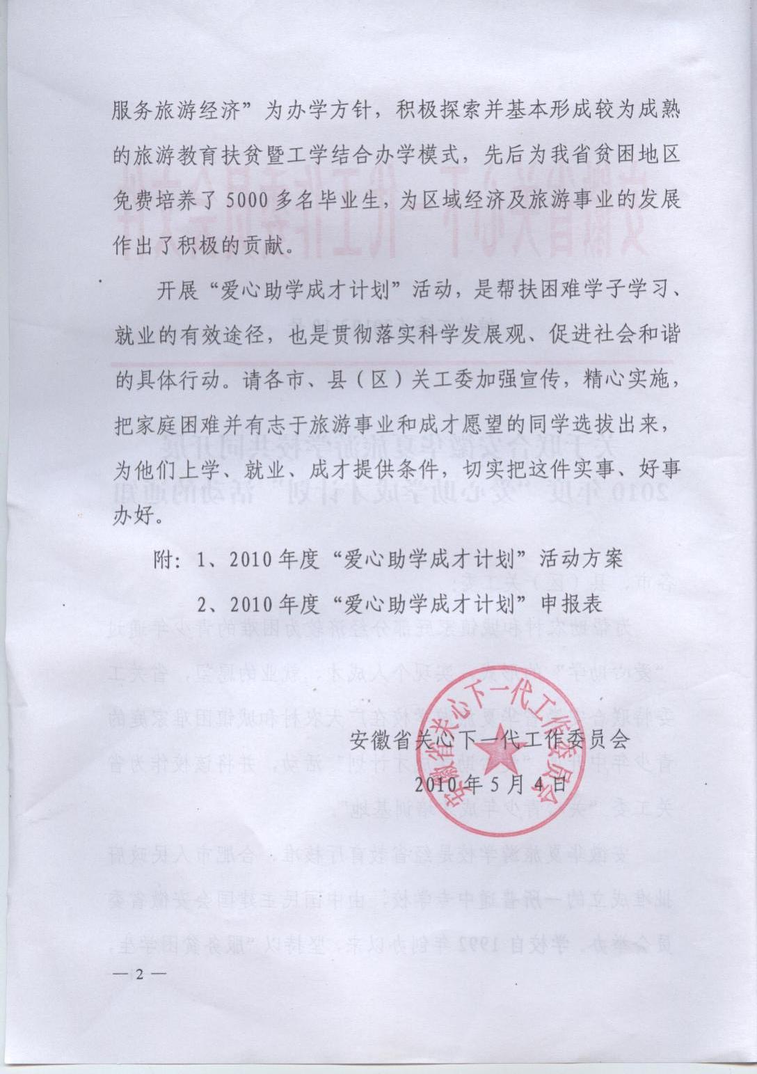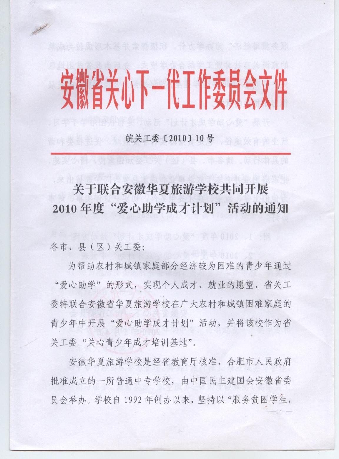2010年安徽关心下一代工作委员会文件