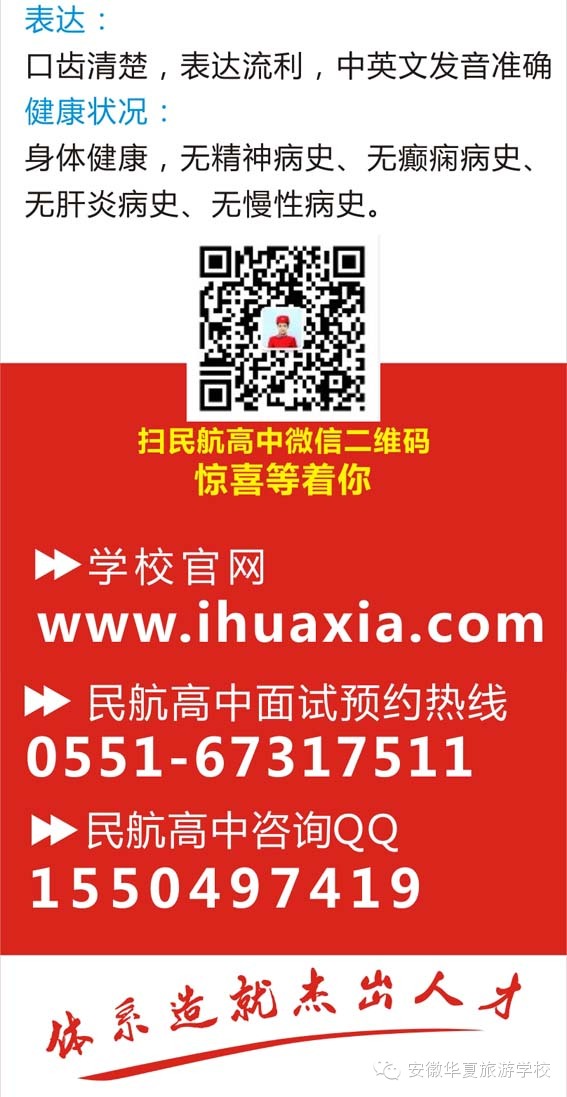 安徽华夏旅游学校2014特色民航高中班开始招生啦!家长们请关注啦!