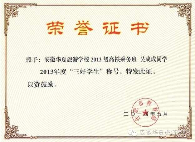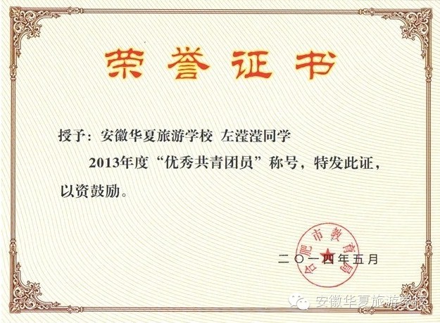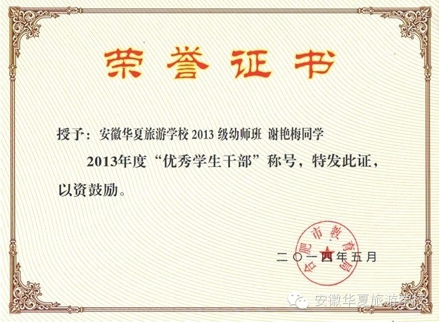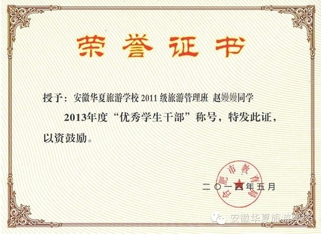 经过安徽华夏旅游学校学生处、团委民主评选,全校公示,上报合肥市教育局复核,赵嫚嫚等12名同学分获“三好学生”“优秀学生干部”“优秀共青团员”光荣称号。
