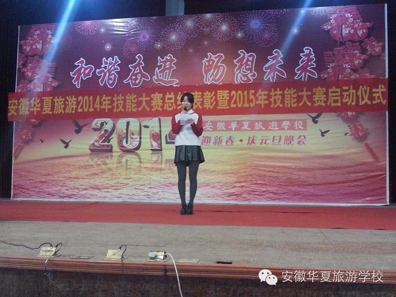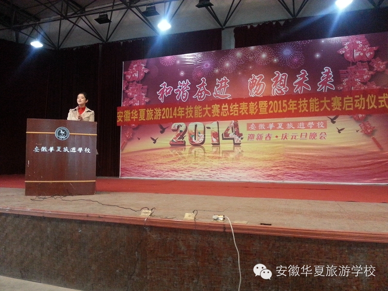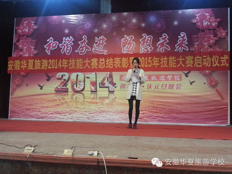 学生会欢快的开场舞《向前冲》拉开了“安徽华夏旅游学校2014年技能大赛总结表彰暨2015年技能大赛启动仪式”的帷幕。