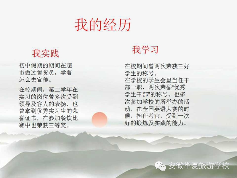 在三年中专阶段学习中,荣获“优秀实习生”、“优秀毕业生”、安徽省2014年中等职业学校“德能双优”学生等荣誉称号。