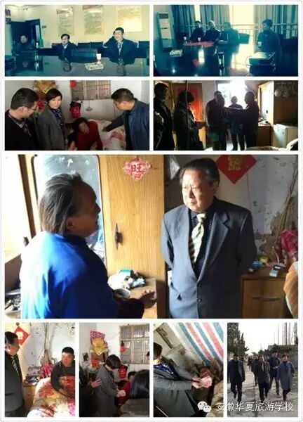 2015年2月10日安徽华夏旅游学校校长王卫东陪同省政府参事、安徽华夏旅游学校名誉校长王世清,合肥纪念日服饰连锁企业张燕、张雨两位爱心企业家一行赴撮镇特困家庭慰问。