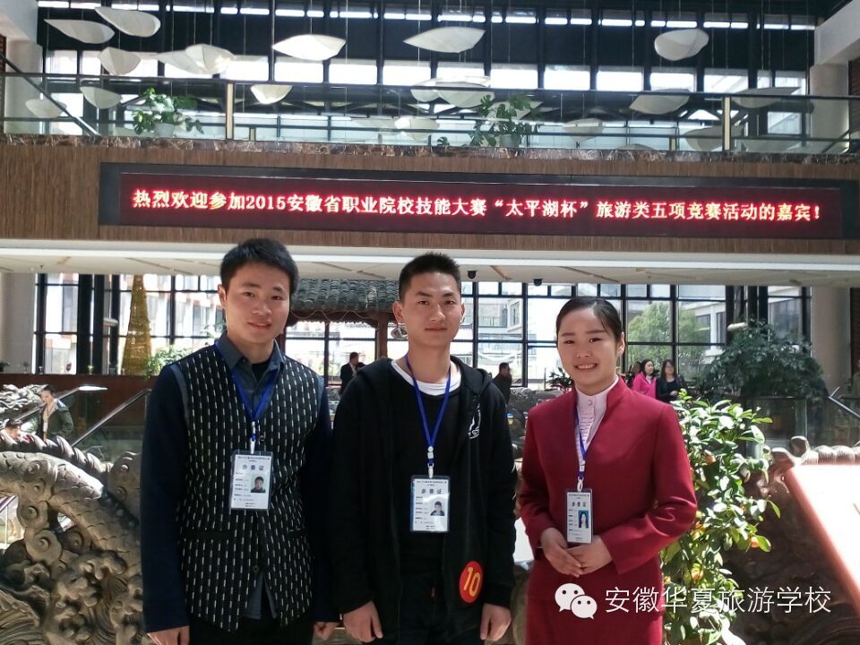 在2015年合肥市中职院校技能大赛中,安徽华夏旅游学校袁学军、绳家然、王烽三名选手分别在导游、中餐摆台、客房铺床三个项目中获奖,获得参加省赛资格。
