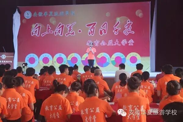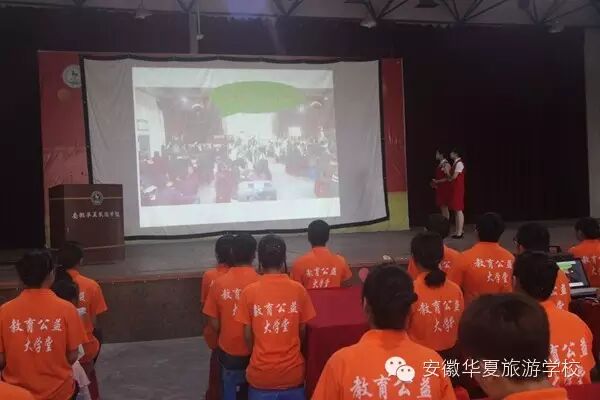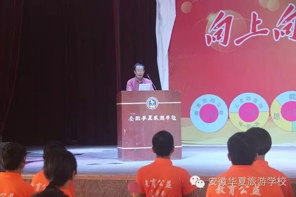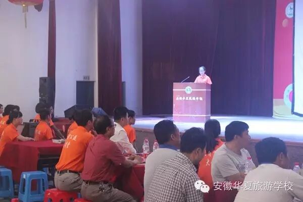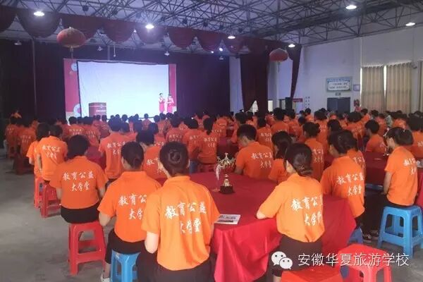 2015年6月26日安徽华夏旅游学校学校召开“华夏教育公益”第一期成果展示暨总结表彰大会。参加此次会议的有来安县关工委主任、安徽华夏旅游学校2015届家校亲友会主任陈永庆先生,安徽华夏旅游学校副校长汪虹、苏长兵,部分学生家长代表,安徽华夏旅游学校引导师、主课师和后勤师代表。