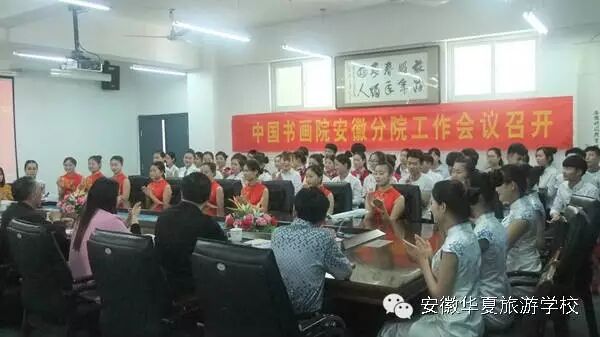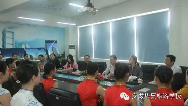 2016年5月5日下午,江南影视艺术职业学院航空乘务学院张炳生院长一行莅临安徽华夏旅游学校,洽谈航空服务、高铁乘务专业学生对口升学事宜。安徽华夏旅游学校执行校长宁献兵,副校长彭慧娟、苏长兵、汪虹,以及2014级、2015级航空服务、高铁乘务专业50名学生代表参加了此次见面会。