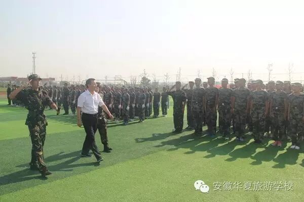 八天的时间,相对一生,只是短短的一瞬,八天的汗水,经历风雨,也只是个短短的开始。迎着清凉的秋风,沐浴着和煦的阳光,在这个温馨而又成熟的八月,安徽华夏旅游学校2016级新生在全体师生和各位教官的共同努力下,已经圆满完成了军训实践任务。2016年8月29日上午学校举办2016级新生军训汇报表演暨总结表彰大会,共同检阅同学们八天来的训练成果。安徽华夏教育理事长、安徽华夏旅游学校校长王卫东,副理事长苏长兵,执行校长宁献兵,副校长彭慧娟、操新生以及各部门负责人和新生班主任参加了此次大会。