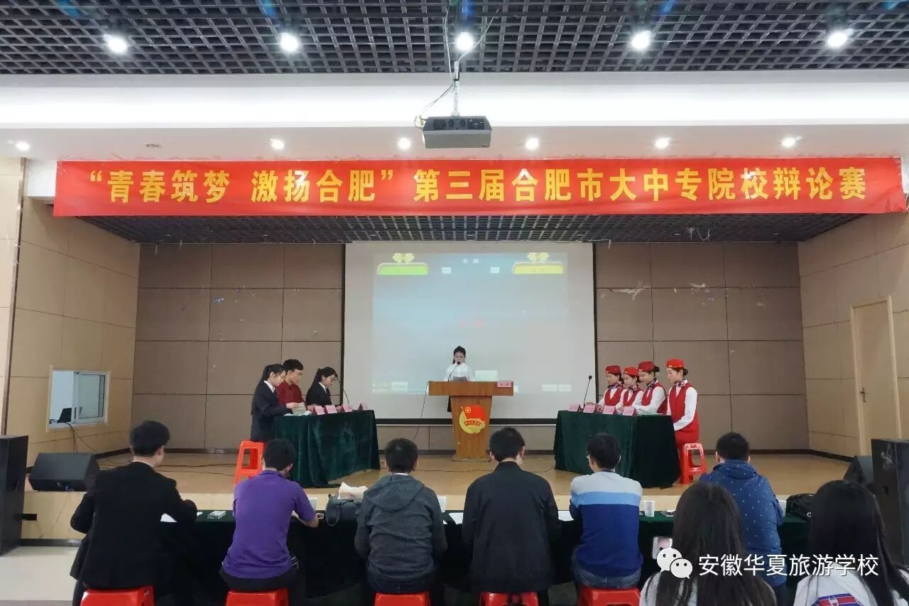 2017年4月26日下午,合肥市第三届“青春筑梦 激扬合肥”大中专院校辩论赛中职组决赛在合肥财经职业学院成功举办,中国科学技术大学辩论队、安徽大学演讲与口才协会等多位辩论经验丰富的辩手共同担任评委。