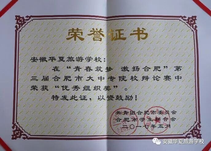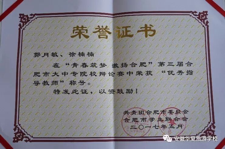 安徽华夏旅游学校在此次活动中被评为“优秀组织奖”;徐楠楠、郭月敏两位老师荣获“优秀指导老师”称号。