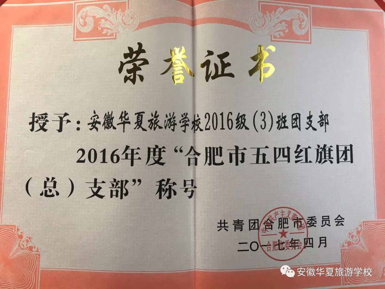 安徽华夏旅游学校2016级3班团支部荣获2016年度“合肥市五四红旗团(总)支部”称号。