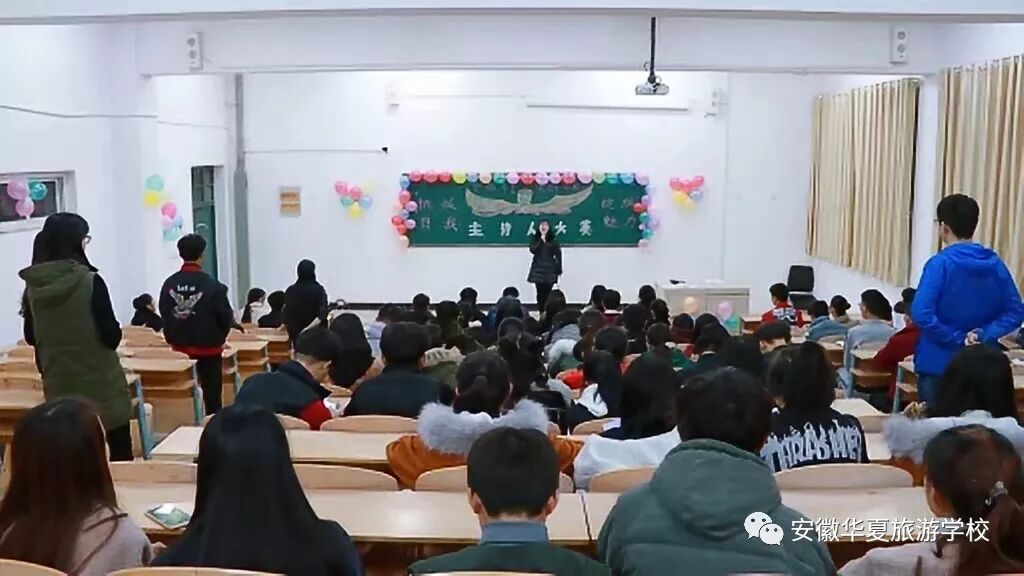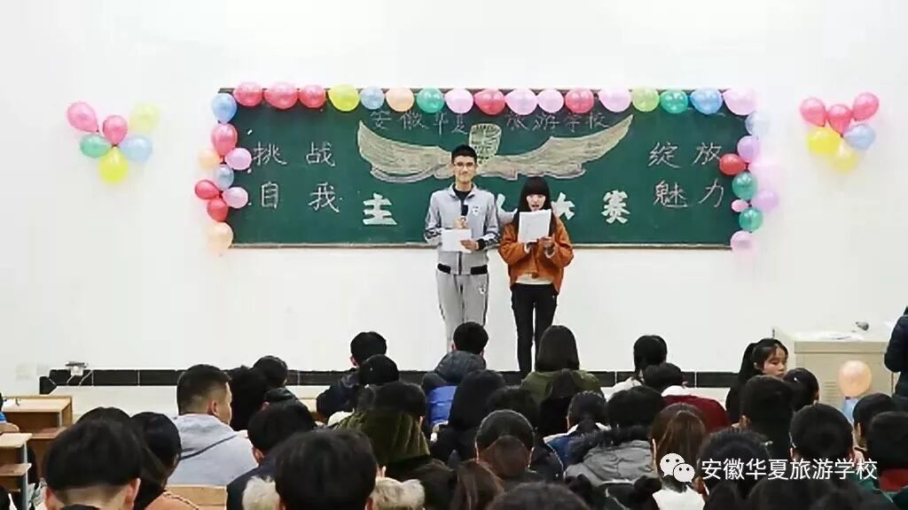 2017年11月29日晚上6:00,安徽华夏旅游学校主持人大赛决赛在阶梯教室七拉开序幕。活动由校学生会学习部、劳卫部联合举办,来自全校的10名选手顺利通过海选,进入决赛。比赛主要分为两大环节,分别是自我介绍、模拟自选主持,全方位的考验了选手们的素质与能力。