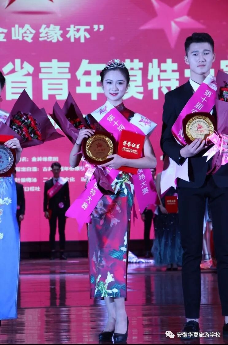 安徽华夏旅游学校牛麦琪同学荣获第十届安徽省青年模特大赛平面组冠军!同时她也凭借超高票数斩获人气奖第二名!我校陆志辉同学也以9360票荣获人气奖第三名!