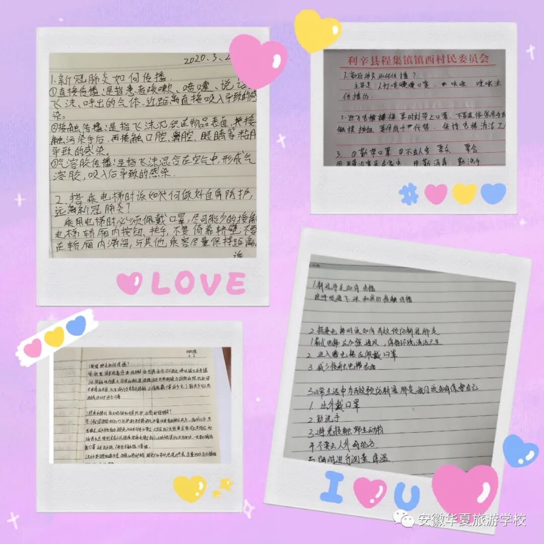 安徽华夏旅游学校全体师生,在这个特殊的时刻,让我们珍惜这特殊的授课旅程。每天老师和学生相伴于空中课堂,希望同学们也要一如既往的投入到学习之中,调整心态,按时参加网课,认真听讲,让我们继续坚持这不一样的学习时光吧~