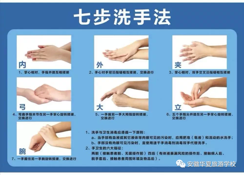 小技巧:按“内—外—夹—弓—大—立—腕”口诀进行;时间不应少于20秒,相当于唱完两遍“祝你生日快乐,祝你生日快乐,祝你生日快乐,祝你生日快乐!”的《生日快乐歌》。