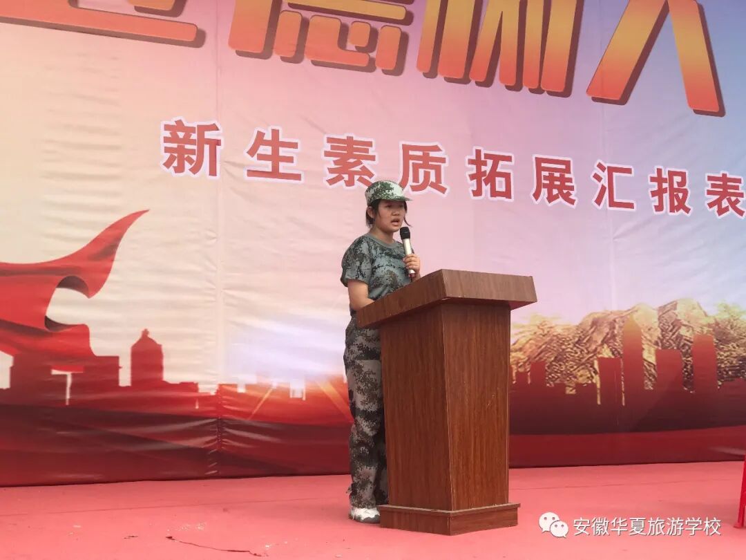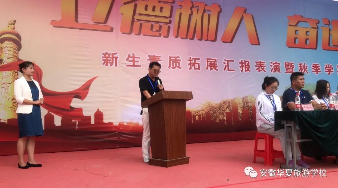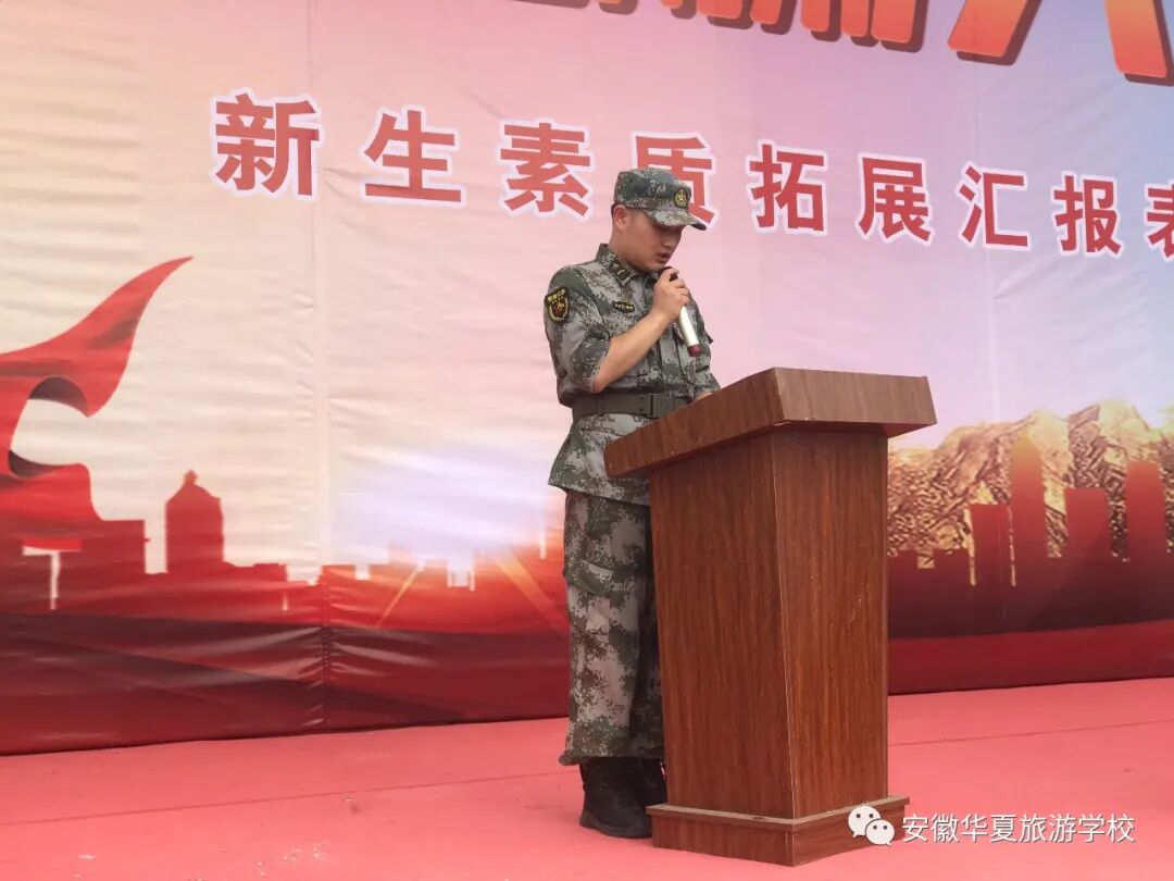 安徽华夏旅游南区校长宁献兵致辞,代表学校向2020级全体新生的到来表示最热烈的欢迎!向军训教官、20级班主任以及为军训做好各项服务的教职工和学生志愿者表示最亲切的问候和衷心的感谢!要求同学们通过此次军训,发扬坚忍不拔、宁折不弯的刚直与豪迈,不畏艰难、雄气勃发、愈挫弥坚的青松精神。并对同学们提出殷切的希望:一是要追求全新的生活,新的平台、新的希望、新的梦想,给老师一个惊喜,给家长一份欣喜,给同学多一些微笑,跟老师多一些沟通,做一名有理想的中职生。二是要立志技能强身,技能创造财富,技能成就人生,做一名有技能的中职生。三是要养成良好的生活、学习习惯,我们要在安全意识、内务整理、环境清扫、个人卫生、时间管理、自我约束等六个方面养成良好的习惯,做一名有素质的中职生。四是要做为人阳光、做事负责、交好朋友,做一名有道德的中职生。