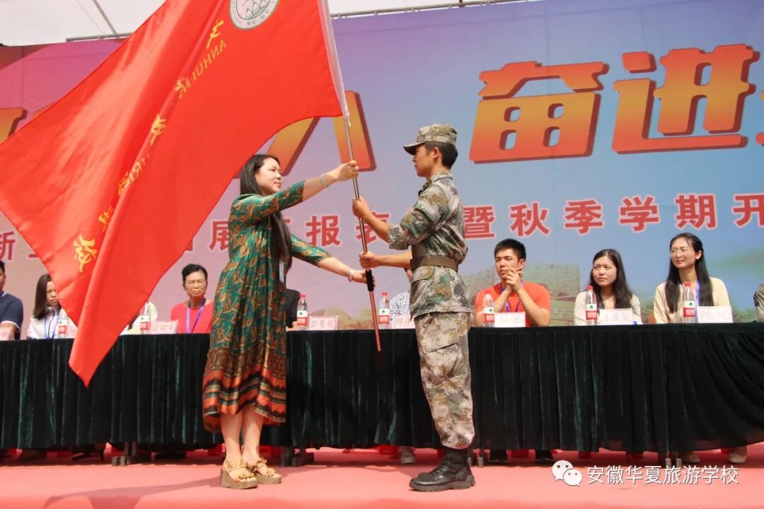 开训仪式在庄严的授旗中圆满落幕。我校执行校长彭慧娟向军训总教官授校旗,将代表华夏的希望,一千多名学生的初次历练成长,现在已经交到教官的手上,这一面旗帜将凝聚着全校师生的梦想和智慧,这旗帜必将引领每一位华夏学子刻苦学习,为心仪的学校而奋斗,最终走向成功之门。全体2020级新生也正式投入到紧张激烈的军训演练中。
